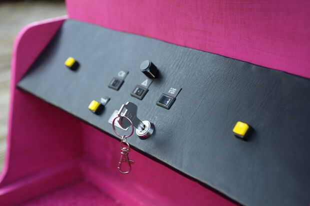 Usé algunos desechos de piel sintética para cubrir el tablero. Cubre el capas con algun pegamento y me pegó la imitación a él. Después de que se había secado, cortar los agujeros y añadido a los botones y diales. Tuve que ampliar algunos de los cables como los controles de motos juntas.