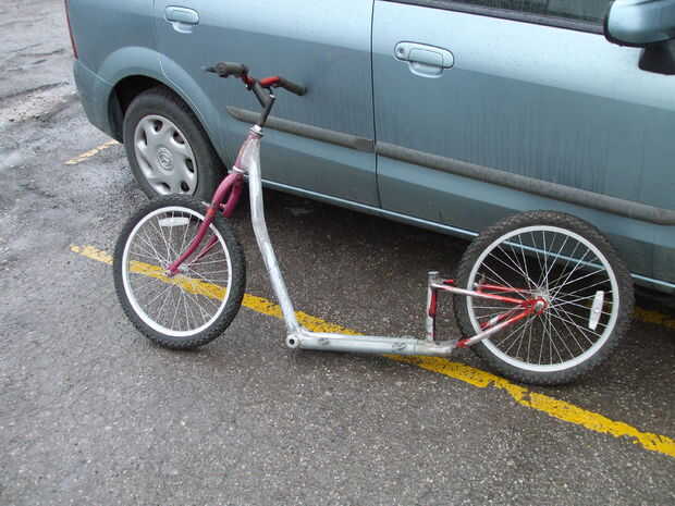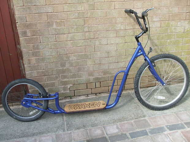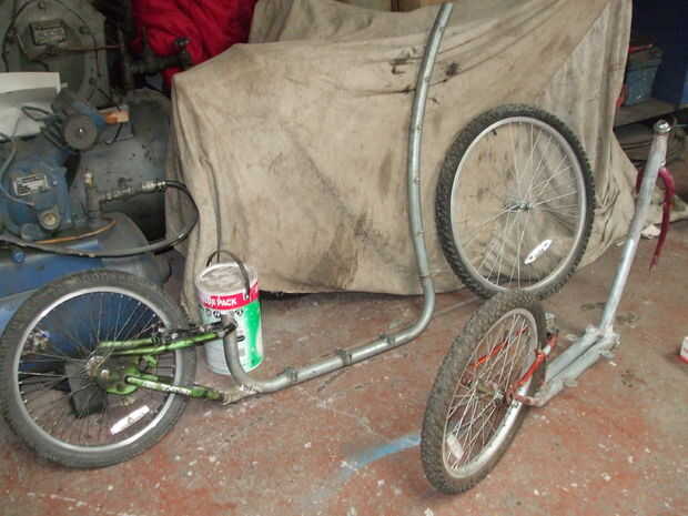 Hi uno de mis muchos proyectos, como mi hija mucho prefiere de moto de scooter y no poder pagar o encontrar un Scooter más grande allanaron mi cobertizo y patio de chatarra local para una combinación de bicicleta vieja y tubo de trampolín y decidió que hace a la construcción de una pero parece que tienen llevado un poco lejos pues todos tenemos uno ahora , tan diferente de mi último proyecto en madera pero igual divertido, creo que la parte más difícil de la construcción fue alineando todo. publicaremos más detalles cuando trabajo esto, no se caliente en de PC