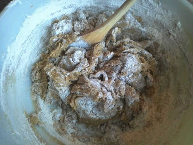 Revuelo en medio la mezcla de harina, seguida por el resto cuando la primera mitad se combina sobre todo.