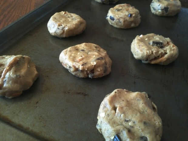 Engrase una bandeja para hornear galletas. Rollo de masa en 1 3/4 pulgada redonda bolas y coloque en galletas. Aplanar las bolas ligeramente con un tenedor o la palma de su mano para que sean 2 pulgadas de ancho. Lugar en cookie hoja aparte por lo menos 2 pulgadas.