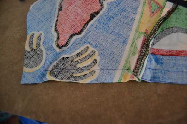 cortar a la tela sobrante alrededor de la cintura por lo sólo un cm de margen izquierda y serge el borde con la máquina overlock.