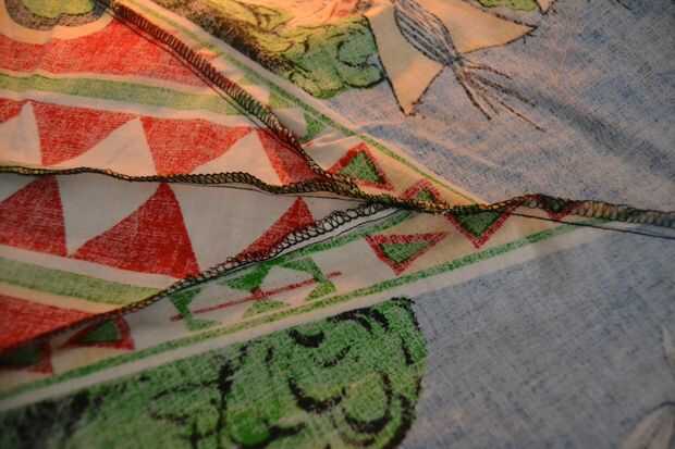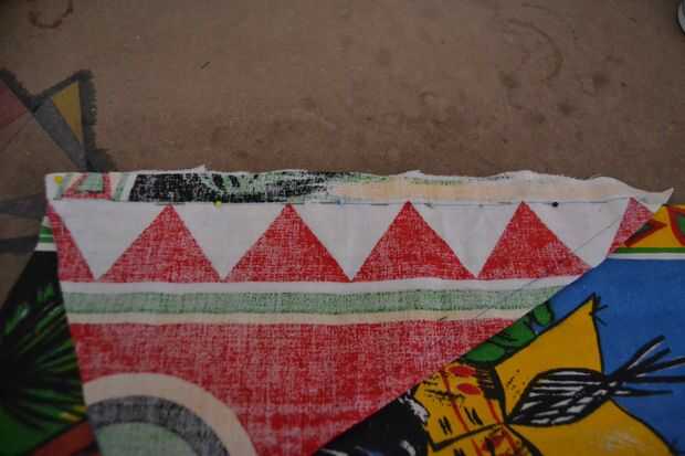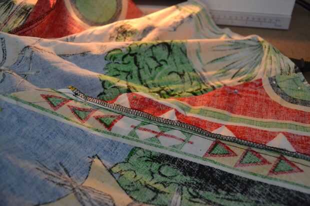 después se cosen las piezas más pequeñas a las grandes piezas, coser las 4 piezas grandes juntos, asegúrese de que (otra vez) a coserlas juntas en el orden correcto. en las dos últimas piezas que usted está cosiendo juntos, deje los últimos 10 cm hacia el interior abertura circular--abierto (la cremallera estará allí más adelante).