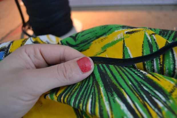 una vez terminada la falda, añadir cinta de bies a egde inferior. como se mencionó, margen de costura no se necesita sobre el egde inferior por eso. a partir de cualquier lugar (un círculo no tiene ningún principio...) perno de la cinta de sesgo a la tela, para que el egde crudo de la tela está envuelto por la cinta. casi todo el camino alrededor del perno, pero deje los últimos 10 cm liberará y cortar la cinta por lo que es es unos 5 cm más largo que el círculo completo (lo sentimos, no hay foto de esto). coser la cinta a la falda hasta llegar a los últimos 10 cm. ahora doblar el último cm de la parcialidad de cinta hacia el interior hacia sí mismo (hacia el lado izquierdo de la cinta), el pin el resto de la cinta a la falda, el último cm de la cinta se acostará sobre el principio de la cinta ya cosido a la falda. coser el resto de la cinta a la falda.