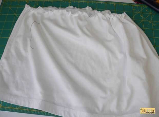 Para hacer la falda, mida desde justo por debajo de la cintura de su hijo, donde le cortamos la parte superior, a la longitud deseada, agregar una pulgada para las costuras. Tomar la segunda salida y medir desde la base subiendo y cortarlo. Usted está midiendo desde la parte inferior porque entonces no tienes al dobladillo del vestido, su ya hecho. :) Recoger la parte superior de la falda para que coincida con la parte inferior de la blusa.