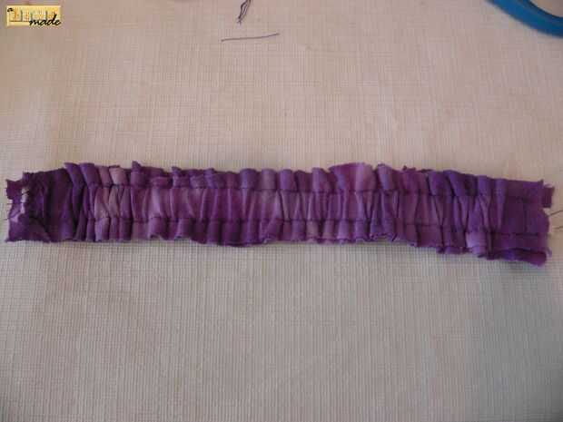 De la correa (si quieres uno, no es necesario levantar el vestido) cortar dos trozos de tela, 1 1/2" de ancho por 10" de largo. Con los lados mal juntos cosí una costura de 1/4" de cada borde, quería los bordes expuestos, al igual que la cintura. Me inserta el elástico y lo seguro en cada extremo coser a.