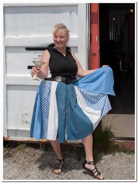 Después de elegir camisas, corté frente y dorso. Luego cortar cada uno en forma triangular y coser a la falda. Te darás cuenta que crea a un bonito círculo. Entonces blanco y negro para la parte superior, dejando libremente a medida con una cintura caída por lo que puede ser ceñido para versatilidad. Muy fresco en los calurosos días de verano!