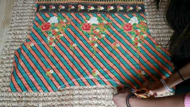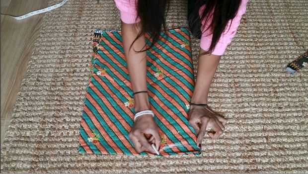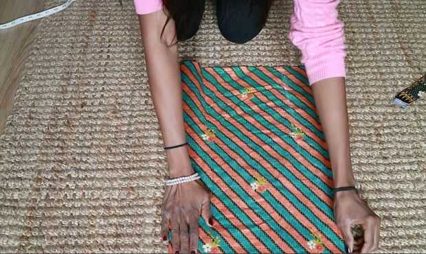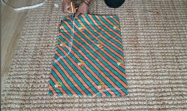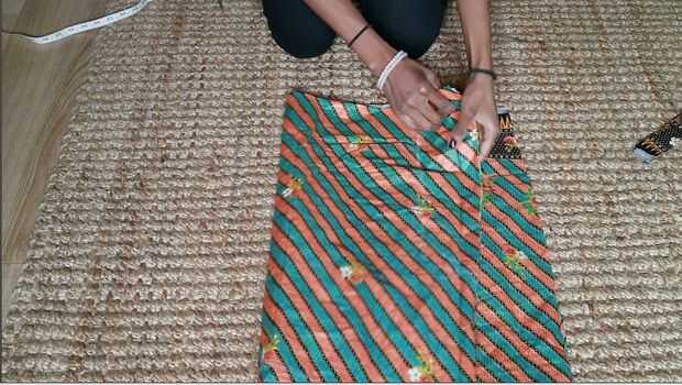 1. Doble a la tela a lo ancho como se muestra en la imagen.