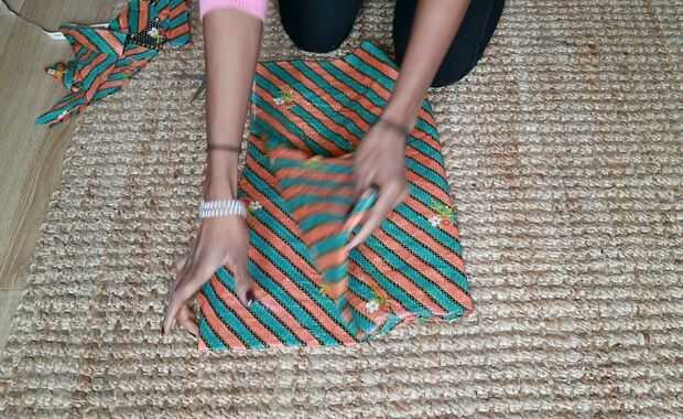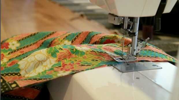 1. Coser los tela derecho lados juntos. con un margen de costura de 1,5 cm.