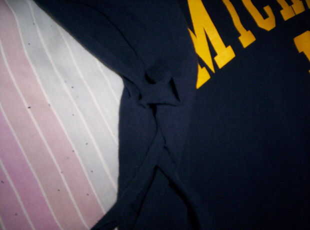 Luego comenzar en la parte superior y utilice una tira para atar para arriba el lado. Mi enfoque original era al igual que los cordones, pero que era un poco espaciada cuando le pongo. Así traslapó los bordes para que los agujeros alinean y había atravesada en cada extremo de la corbata. Terminaron menos espaciada.
