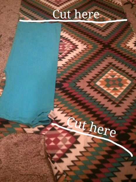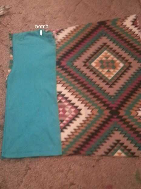 Con la camisa todavía doblada coloqué no lado doblado aproximadamente 1/2" pulgadas lejos del lado doblado. Para el cobertor corté la parte delantera formando un ligero ángulo que va hacia arriba de la costura del hombro hasta el borde de salvamento que más adelante cortar. Corté una pequeña muesca donde termina la costura del hombro sobre una 1/2" pulgadas en para margen de costura. Entonces yo cortar el doblez. Cosí las costuras hombros y laterales en ambos lados conectarse la parte de atrás de la cortina.