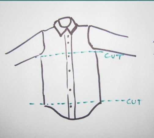 Corte a través de la camisa justo por debajo de la axila y corte la parte inferior el dobladillo recto.