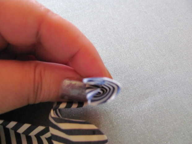 A continuación, presione la tira larga por la mitad, el largo camino.
