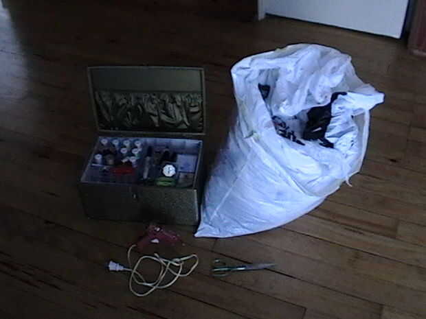 hecha de tiras de bolsa de plástico tiradoPaso 1: Se necesita... 1 par de tijeras3 bolsas de plástico negro (bolsas de la tienda de licor)1 superficie capaz de perno grande (yo usé una forma de vestido)1 caja de alfileresPaso 2: Cortar la bolsa 1. co