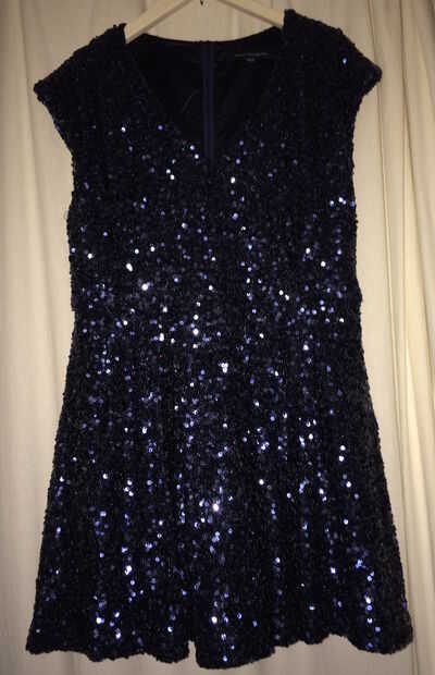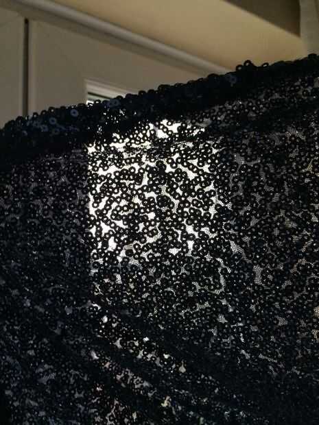 Para mí, el vestido (Espectacular brillo vestido de French Connection) ya había sido comprado para la ocasión y algunas de las ideas para este proyecto fueron desarrollados en base a la construcción de este vestido de particular. Al elegir un vestido te recomiendo algo que tiene una falda escarpada externa con lentejuelas, purpurina o un efecto metálico aplicado a él y una enagua resistente, opaca en el que la electrónica puede ser unida. Esto permitirá que la luz de los LEDs brillan debajo de la falda exterior y se mezclan con el destello de luz ambiente que refleja de las lentejuelas. Si tu vestido tiene pliegues (como éste) creará una superficie variable que puede Agregar aleatoriedad a una posición de LEDs, realzando la ilusión.