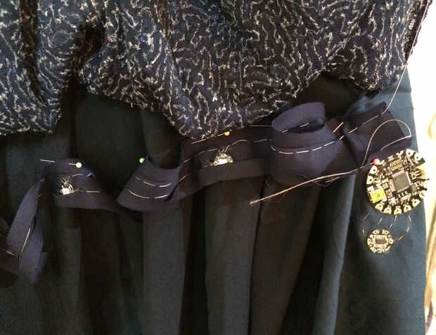 Una vez que tengas todo probado y trabajando para su satisfacción es el momento de colocar la tira del LED al circuito Flora y fije todo el vestido. Te recomiendo fijar todo el vestido antes de empezar a coser. Esto le permite comprobar colocación, cortina y la comodidad antes de comprometerse con hilo y aguja. Prender la bolsa Flora a un lado de la enagua y fijar el principio de la tira LED cerca de la almohadilla de D6 de los pernos de la Flora de lugar para que la cinta se encuentra naturalmente y sigue el flujo de la enagua, fijación por cualquier punto que hebillas o tira de ella. Cuando tengas todo lo cubrió hasta debe coser los tres rastros de LED en la Flora y ejecutar una test...make final que tus pins no son cortocircuito cualquiera de tus huellas. Si todo está trabajando usted ahora está listo para coser! Costura una virada por avante o dos en cada uno de los puntos fijados debe crear un ancla fuerte de soportar incluso el más violento del partido twerking sesiones... aunque con tanta acción quiera realizar una batería de repuesto.