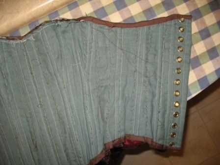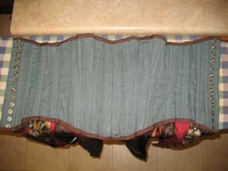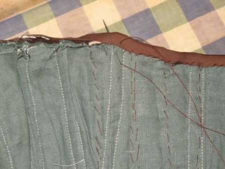 32. hacer esa cosa de cinta otra vez.  Es justo.  Hierro de un lado su única cinta de bies de abierto y cuidadosamente coser el lado plano en la parte superior del corsé.  No puedo recalcar suficiente cuidado cómo debe--ser conscientes del deshuesado!
