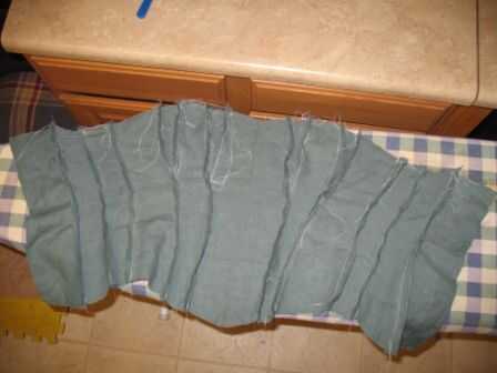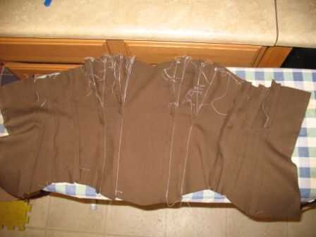 8. empezar costura. Comience con su guarnición. (Si siempre empiezas con su forro, tiene menos que temer si atornillar para arriba y, en general, menos dinero para bombardear sustituir la guarnición que simplemente jodido. Hablo por experiencia. De todos modos...) Con derecho, coser el regresar al lado detrás. Entonces el lado volver al frente de lado, entonces el lado frente al busto de gore, gore busto medio frente al busto de gore al frente.