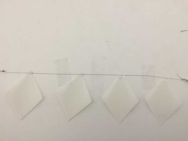 Bien, vamos a cinta de los lados del alambre de flexinol sobre la mesa para hacer todavía.