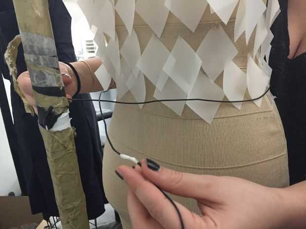 OK vamos a poner el circuito bajo las hojas del vestido. Así que, cada vez que se pulsa el sensor de presión. El circuito comenzará a calentar un poco y hacer las hojas del derretimiento y caen.