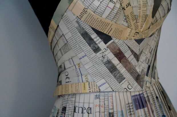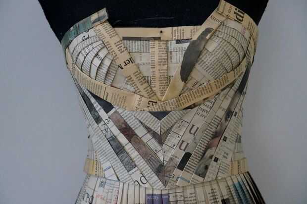 Ahora pueden empezar llenando para arriba de la blusa para cubrir para arriba. Usé un periódico diferente para esto y durante los años ha coloreado diferentemente, pero me gusta esa manera.