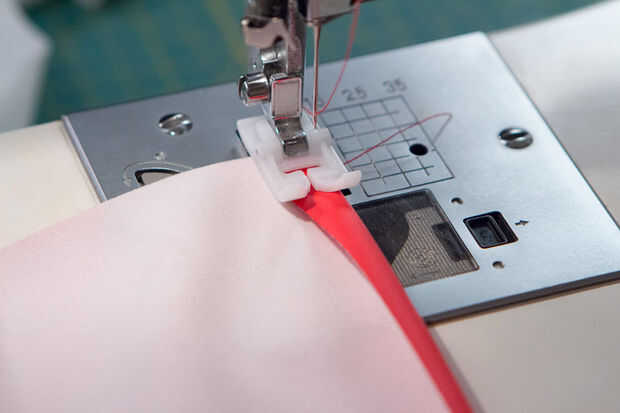 • Se recomienda utilizar un prensatelas de rodillo del pie cuando tapa-que cose telas imitación de cuero o vinilo.