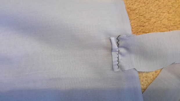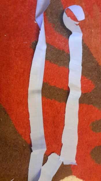 Tomar una tira larga de material y plegar los bordes en it.then tarda en finas tiras y coser en los extremos para crear los lazos de la puntada