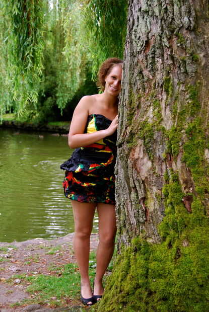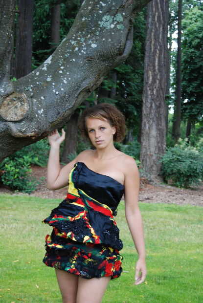 Esto es para mi amigo gran salvavidas que es mitad Jamican. Preguntó si ella podría hacer un vestido reciclado, y por supuesto con una Musa hermosa como esta, era fácil. Esto se hace fuera de tela reciclada, de Jamican colores. Los trozos de material que se iba a la basura.