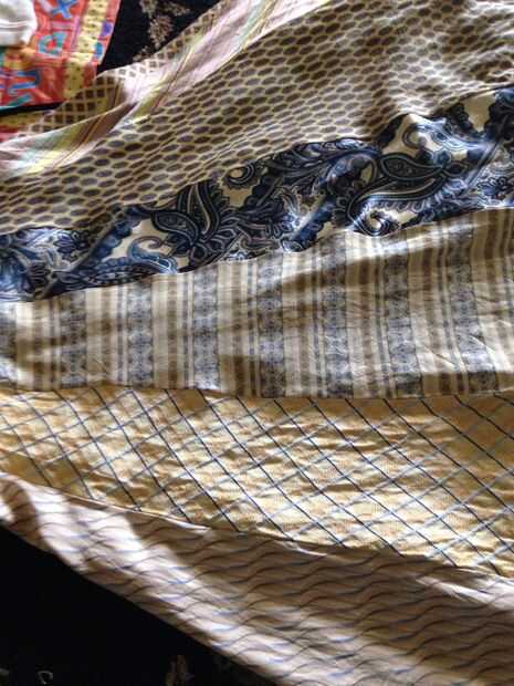 Después sabes que corbata va junto a la cual, puede empezar a coserles juntos. Asegúrese de iniciar la costura en los extremos de grasa de cada lazo. Todos los lazos serán diferentes longitudes por lo que asegúrese de que el aspecto de fondo incluso. Coser alrededor de todo el camino así que terminas con un tubo de lazos. Debe ser suficientemente ancho en la parte superior encima de la cabeza y luego flare hacia fuera en la parte inferior.