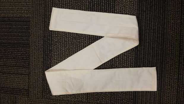 Coser un cinturón ancho de 3" de una camisa vieja de algodón. Páginas del doblez en triángulos y coser en la cinta.
