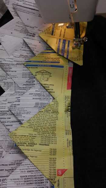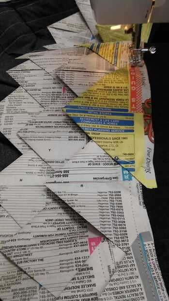 Si elige incluir las páginas amarillas en su vestido, coloque unas pocas hileras de páginas amarillas en el vestido.