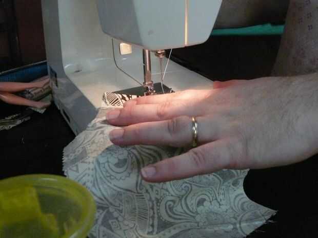 Ahora puede plegar la parte estrecha de la tela alrededor de 1/2 pulgada y coser abajo. Coser el borde pero no demasiado. NO desea la costura para sacar.