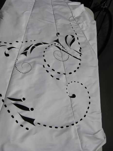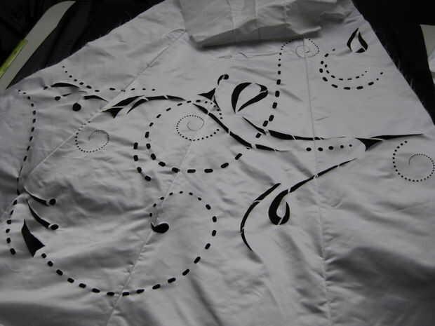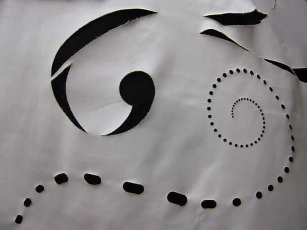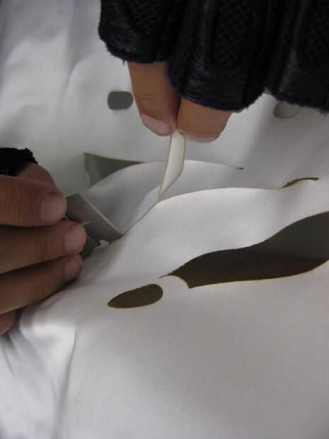 Tuvimos que aflojar algunos pedacitos del finales con una cuchilla de afeitar. Otras partes del diseño eran un poco flojas, estructuralmente, así que yo les había apuntalada con piezas pequeñas, cuidadosamente cortadas de forro que yo planchar sobre la tela.