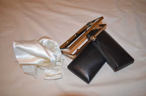2) tela de vestido extra pegamento para fuera de embrague. En el interior pegar las fotos de la tela.