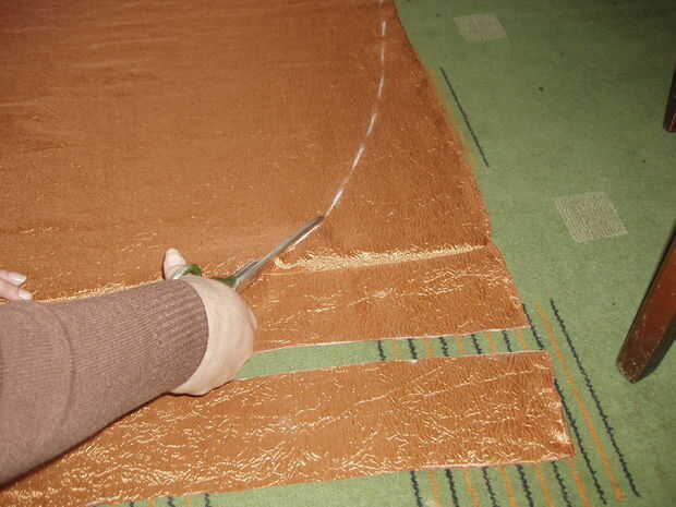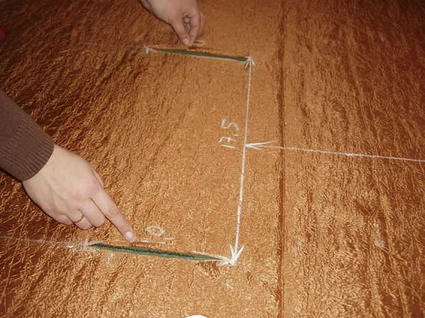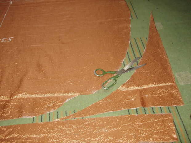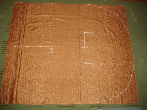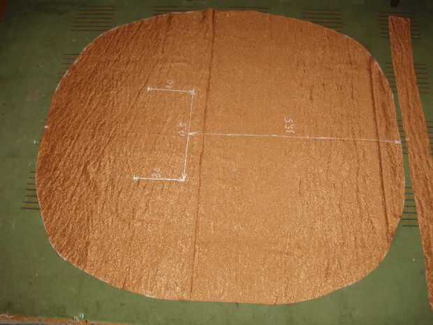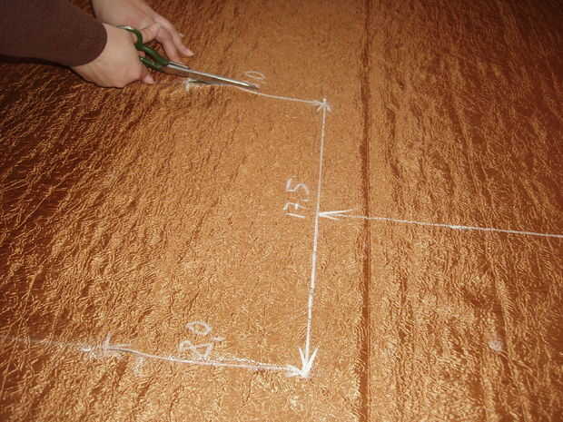 Marcar la tela como en una foto, recortar detalle oval y corte detalle de cinturón. Primero corte detalle de cinturón. Luego corte las esquinas para contorno. Hacer aberturas para las manos como en una foto. Corte completo!