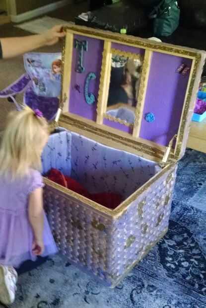 A continuación, colocar una lona y comenzó una esponja el tronco con pintura de pared interior lila ahumado. Una vez que seco, daubed arte oro metálico de la pintura en un patrón aleatorio. El resultado fue extrañamente similar a acabado de huevo de un dragón.