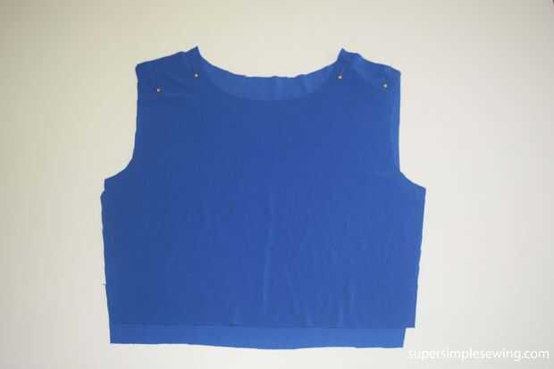 Pasador de la parte superior delantera y hacia derecha detrás junto. Coser a las costuras del hombro superior.