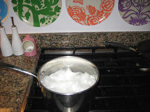 1. En una olla, agregue agua suficiente para cubrir su seda. Añadir un chorrito de vinagre, sobre 1/4 taza de vinagre 4 tazas de agua.