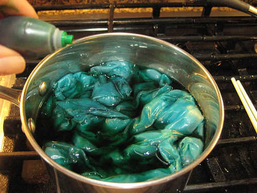 6. Dejar reposar hasta que la mayoría o todo el tinte ha sido absorbida, y se ha enfriado.