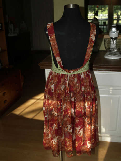 Tomó una tira de la tela alrededor de la zona de la correa trasera dándole un poco de un gacho y luego continuó alrededor al frente como un collar, y así nada se cae también he añadido un cierre invisible. ¿La tela es fina y no hago una guarnición así que yo usaría unos leggings debajo de él pero no sé qué más para llamar que no sea un vestido, tal vez larga camisa? Este es un tamaño de 10 porque era un tamaño de 10 cuando llegué el maniquí, pero he perdido tanto peso no podía caber en mí y trabajar en él lo hizo el tamaño de maniquí y estoy esperando para obtener el peso de nuevo a usarlo pronto.