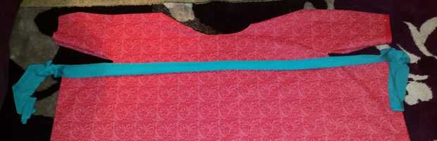 A continuación, péguelo por todo el vestido, justo debajo de las mangas. Procure no pegarla encima de ellos.