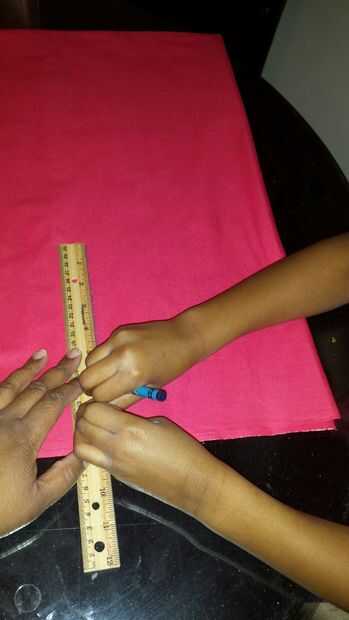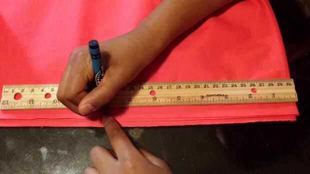 Desde ese punto, use la regla para trazar una línea de 8 pulgadas en la tela.