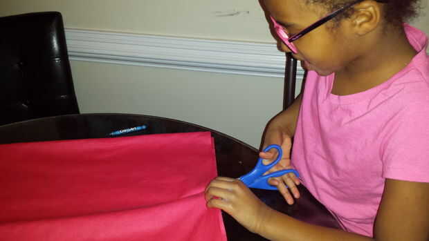 Asegurándose de cortar a través de todas las capas, cortadas a lo largo de la línea que marcó.