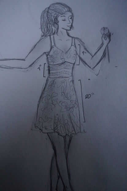 Siempre me encuentro con que, incluso si estás haciendo algo de una foto que vio en algún lugar, usted debe subir con una idea de su propio sobre cómo desea que se vea. Encontré mis ideas para ser muy útil de dibujo. Haciendo esto, también surgió que necesitaba para medir y qué tipo de falda que tenía que hacer. Para este vestido, usted tendrá que medir cuánto desea la falda que, cuánto desea que la parte superior hacia abajo a, y la profundidad será el escote. En mi dibujo original me imaginaba un medio trozo de tela, pero acabé poniendo no en-así que no dejes que el bosquejo confundirle, el vestido que voy a mostrarte cómo hacer tiene dos piezas principales: la parte superior e inferior.