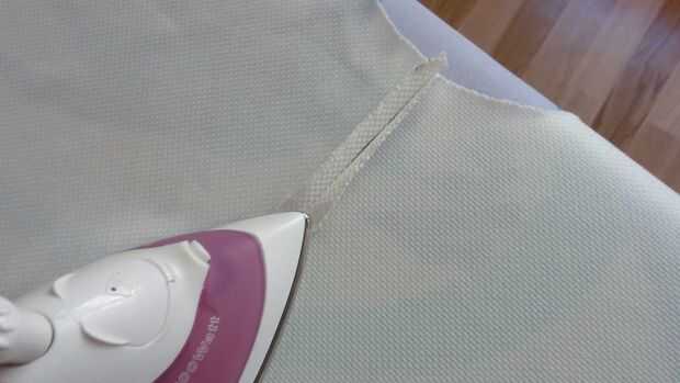 Sobre cada uno de los pliegues en la parte superior de hierro las piezas dobladas y puntada recta. (La parte que no se sutura sin embargo).