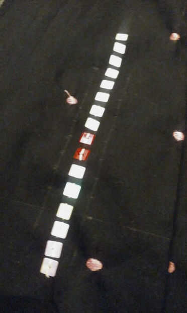 Medida 3/8"(9.5 mm) a cada lado de la fila de lentejuelas en un par de lugares y trazar una línea recta con el lápiz en cualquier lado. Asegúrese de que las líneas son paralelas a la fila de lentejuelas y la distancia correcta. Utilizando a la guía de imagen en el paso de la planificación y el diseño, determinar donde la siguiente fila empieza y termina y marque los puntos centrales de las lentejuelas a lo largo de las líneas. Tenga cuidado para asegurarse de que los puntos son incluso con lentejuelas existentes y uniformemente espaciados 3/8"(9.5 mm) aparte.