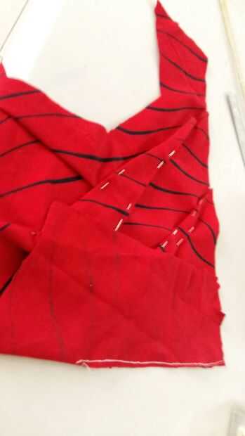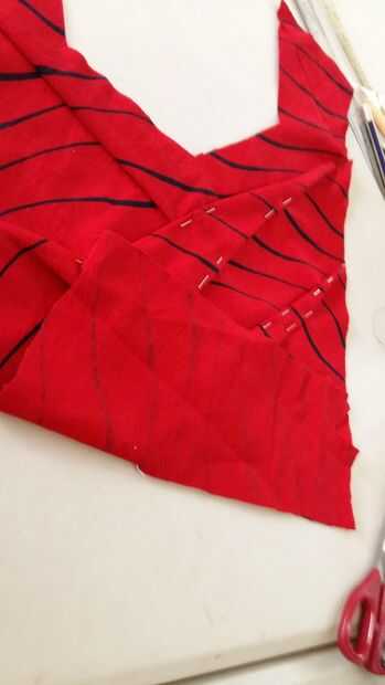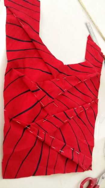 • Coser la parte derecha inferior para asegurar el último pliegue (la última foto)