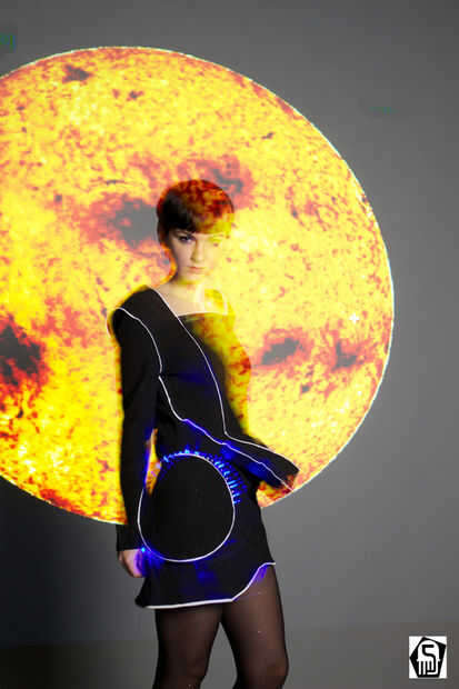 Se utilizó el disco solar proyectado del sol como fondo. Debido a la diferencia en la luz este disco solar requería apertura de la lente durante 10-15 segundos. Esto nos dio efectos adicionales, como la desaparición del modelo dentro de esta iluminación.