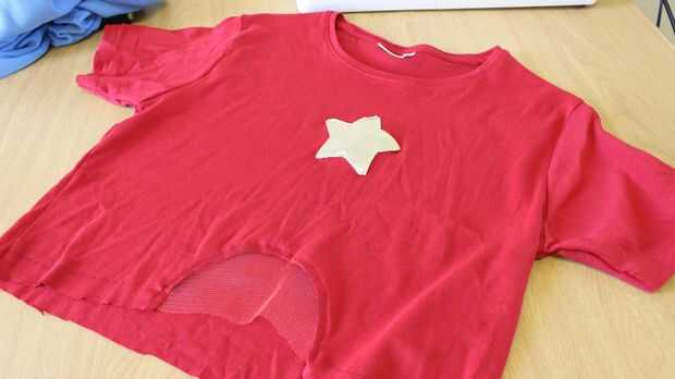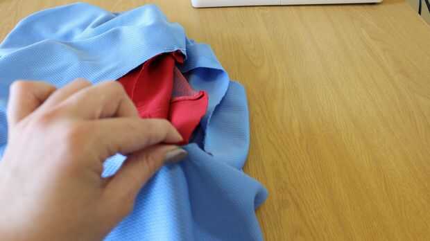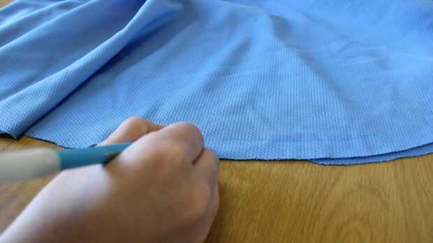 Prender el pequeño círculo interior de la falda en la parte inferior de la camiseta con el encarando los derechos.