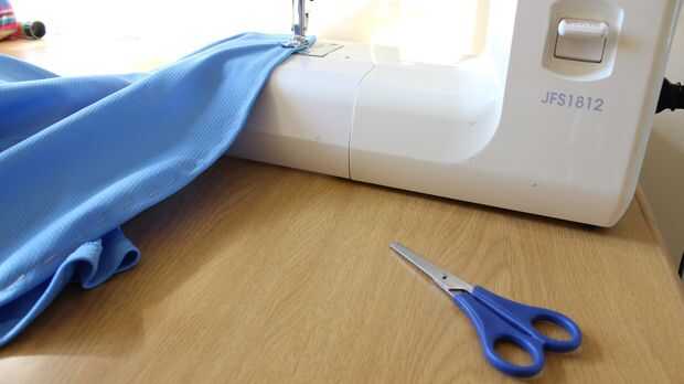 Coser la parte superior y falda con una máquina de coser y recorte los hilos restantes.