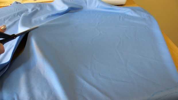 Corte a lo largo de los dos semicírculos que ha dibujado para crear tu falda. Ahora debería tener un buñuelo grande en forma de trozo de tela.